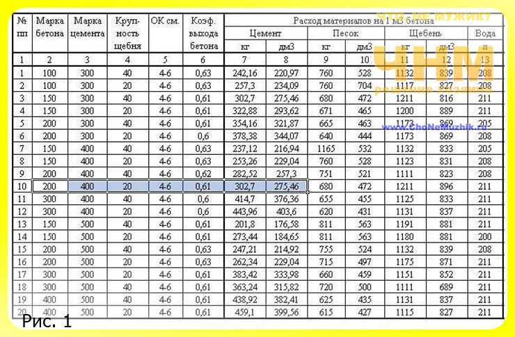 Затем D = (c + w + s) = (333+143+156+572) = 1186 (около 1200 кг/м3)