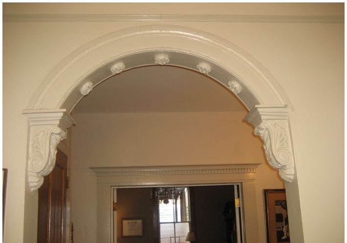 Но арку можно использовать и в качестве неплохого декоративного элемента. По бокам ее можно оформить различного рода гипсовыми элементами различной формы.