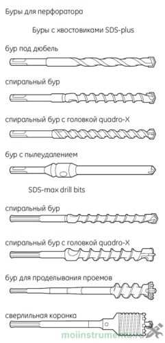 Из сменных насадок для перфоратора, кроме бура, существуют еще: