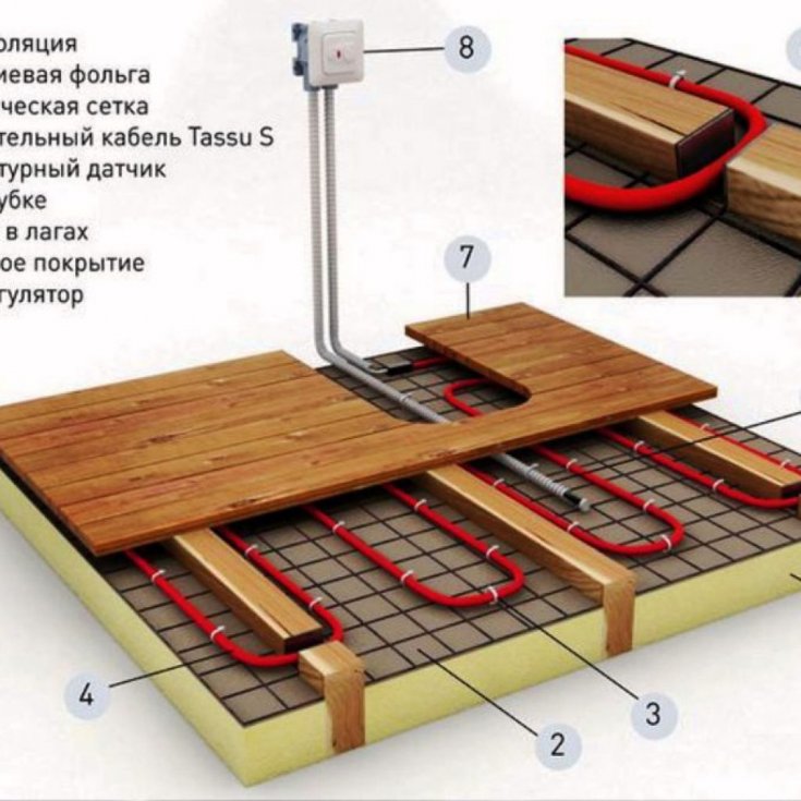 как сделать своими руками, устройство по лагам с подогревом, в частном брусовом, конструкция