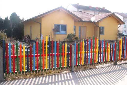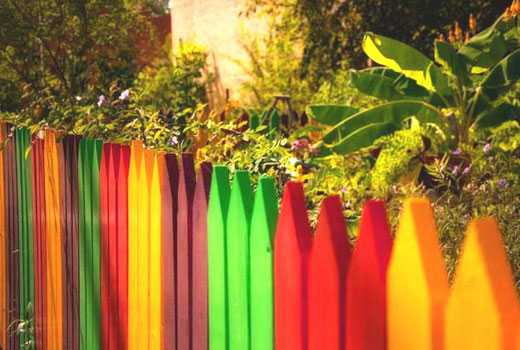 Недорогой забор для дачи из дерева, металла, пластика, другого материала можно покрасить и даже разрисовать настолько оригинально, что выглядеть он будет совсем не дешевым сооружением.