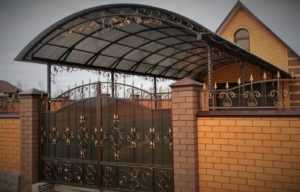 В число удачных проектов из поликарбоната можно включить забор из кованых решеток, обшитый поликарбонатными листами. Это стильное решение для частного дома сочетает в себе крепость металла и иллюзию хрупкого стекла. Неплохо смотрится объединение ковки, кирпича или натурального камня и сотового или фактурного полимера. Даже индустриальный вид профнастила оживляют вставки из поликарбоната.
